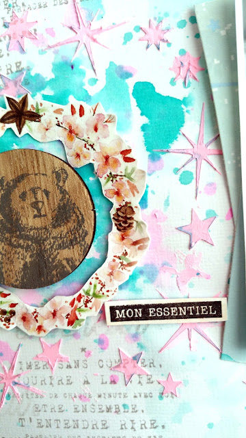 Avec l'utilisation du pochoir "winterland", du tampon "au bois joli" et du tampon "ma recette du bonheur"!